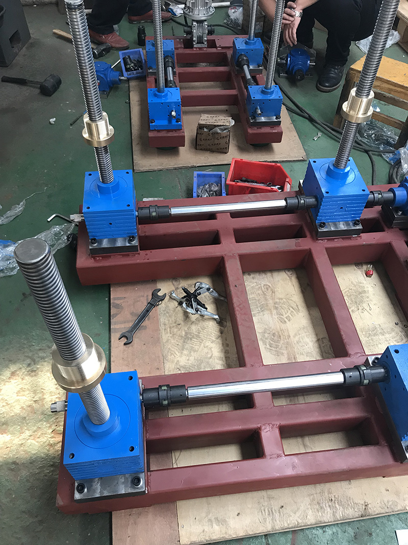 絲桿升降機平臺,是兩臺、四臺、六臺、八臺絲桿升降機聯(lián)合在一起使用的起重部件,具有起升、下降及借助輔件推進、翻轉及各種高度位置調整等諸多功能.